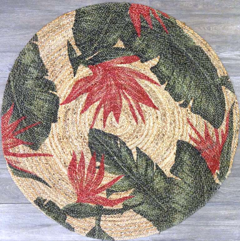 Tappeto rotondo in juta naturale Tropical Rosa – 140 cm
