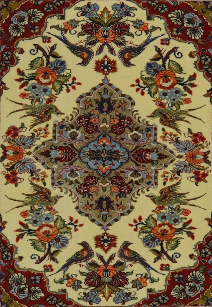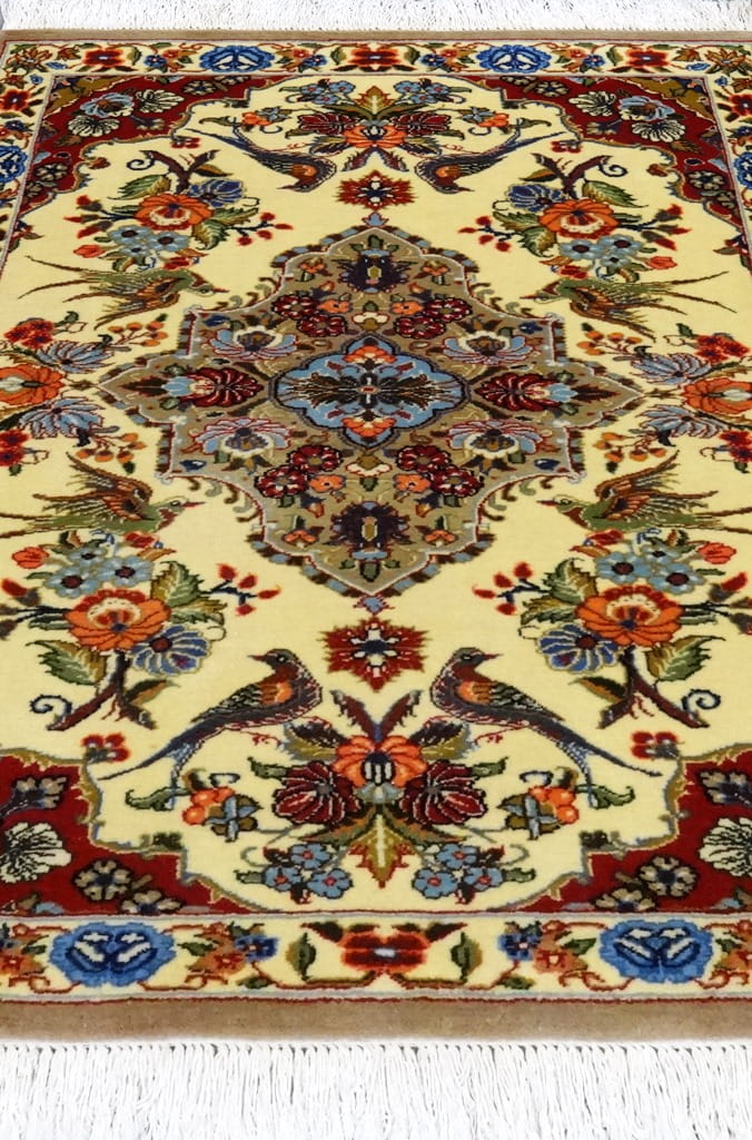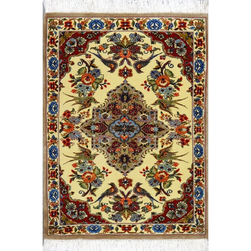 Il tappeto kum è famoso per il suo campo lavorato che mette in risalto i suoi medaglioni.