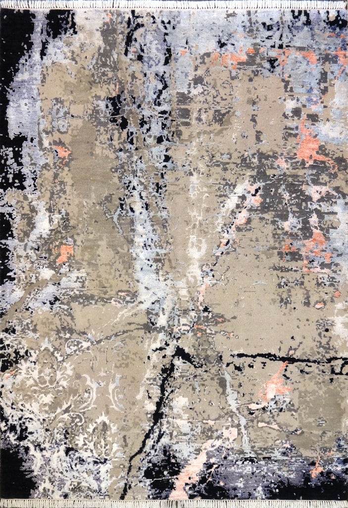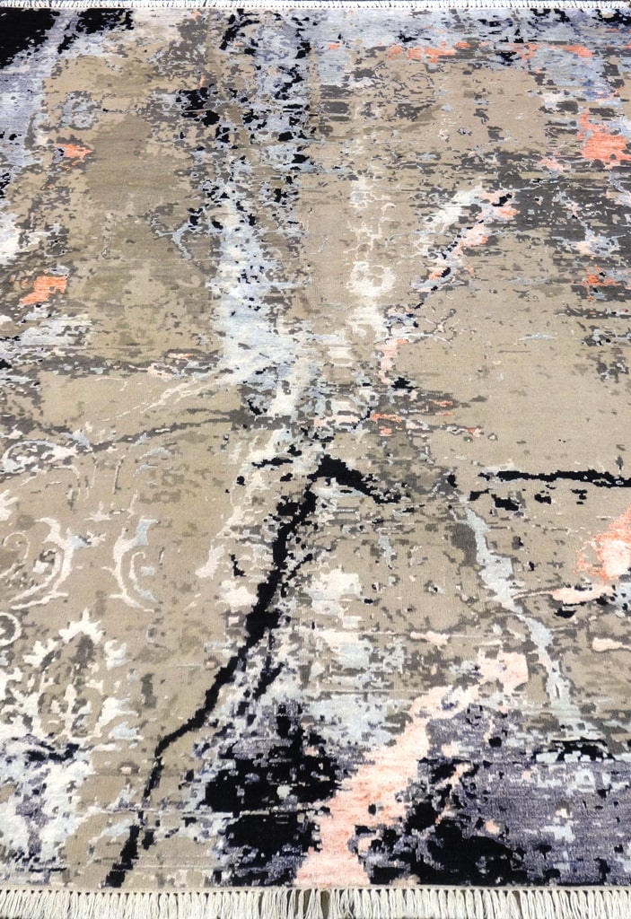 Tappeto Nepal moderno astratto è fatto a mano con tutte le tradizioni dei tappeti con delle lane lucide, morbide e Viscosa.