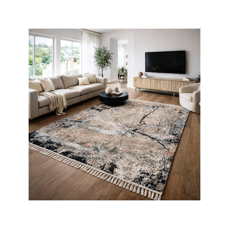 Trasforma il tuo soggiorno in una galleria d’arte personale con il Tappeto Nepal, una tela astratta che porta stile e personalità in ogni spazio, dai soggiorni agli studi fino alle camere da letto. Il suo design inconfondibile, con il contrasto del nero profondo, i grigi eleganti e i raffinati tocchi di rosa salmone, non si limita a decorare: racconta una storia di bellezza moderna.