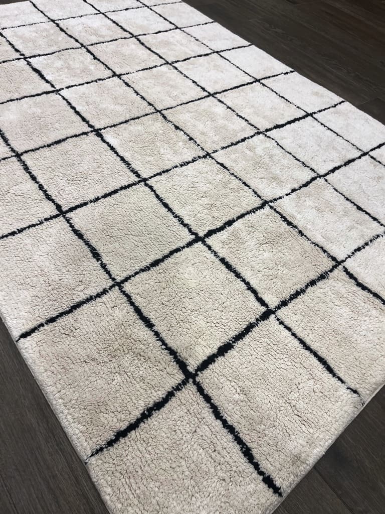 Vuoi un tappeto moderno che sia di tendenza, morbido e versatile? Il tappeto Berbero Noa è l’elemento chiave per creare un’atmosfera accogliente e minimalista nella tua casa. Il suo pattern geometrico a griglia, realizzato con linee nere irregolari su un fondo panna, è un omaggio al popolare stile “berbero” rivisitato in chiave contemporanea e scandinava.